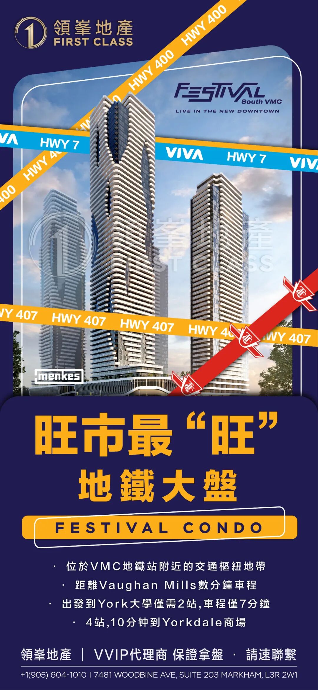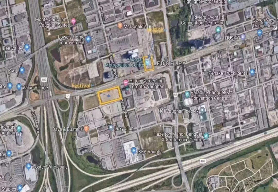 全新的Vaughan Metropolitan Centre (VMC)的商业街就在对面,准确来说占领核心地带,是整个旺市最中心的地方。Mankes将会把407至Highway7打造成整个旺市乃至整个多伦多最大的Master Plan社区。Festival深陷其中,实实在在的聚宝盆!