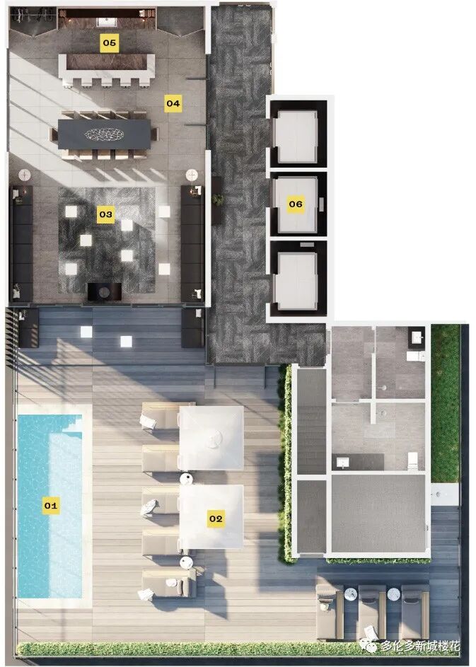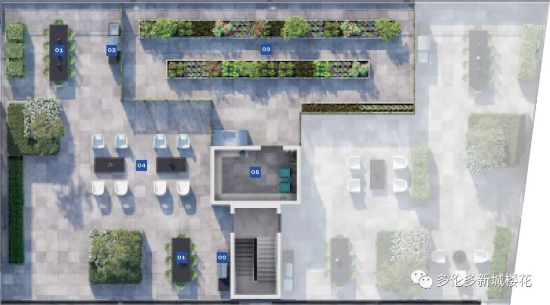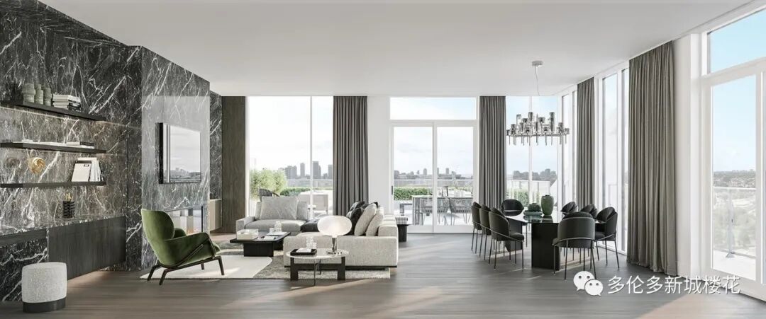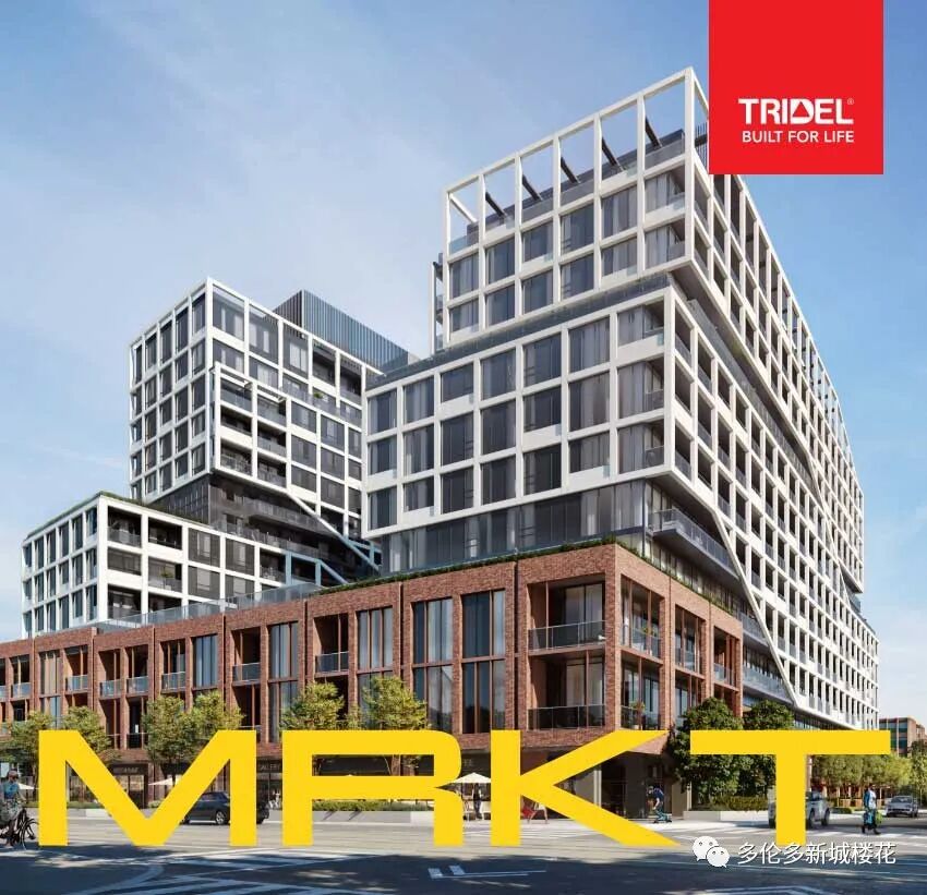 Tridel所建的公寓一定要具有它独有的特色,而紧邻第一、二期楼盘SQ和SQ2,将延续与众不同的方格设计,融为一体,交相辉映,大楼外形颇具时代感的设计,视觉文化的冲击无须质疑。时尚的大楼外形,以几何设计为特点,具有独特的形态美;大楼造型极富原创性、想象力及时代感,必将引领多伦多市中心公寓现代时尚风潮。Tridel非常注重细节体验,当住户走进大堂时,感受到的一定是酒店式服务以及装修风格,让住户第一时间感受到贵宾级的地位。公寓整个休闲区域的风格高雅、稳重,延续Tridel一直以来高端大气的风格。 直入云端的CN Tower, 夏季湛蓝的天空,秋季发粉的晚霞,各种文化背景的人们,来自全球各地的复古商品,穿梭在在繁华的市中心,悠闲漫步于树荫下,在充满文化艺术气息的艺术展馆给自己充电,周末和好友尽情狂欢,住在Mrkt Condos带给你的是永远不落幕的精彩和都市风情。 公寓配有24小时安保服务,2层健身房,小孩室内外场所,室外休闲处,BBQ,花园,室外游泳池,派对室,BAR台,用餐处等。 顶级开发商