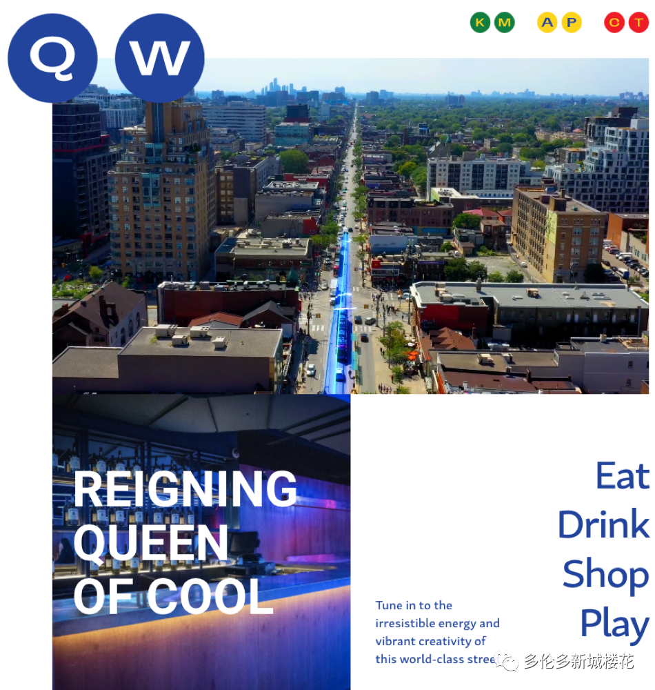 多伦多最前沿的街区非Queen West莫属,被《Vogue》杂志点名为全球第二时髦的社区后更是实至名归,文化、温暖、具有创造力、时髦、便利是Queen West社区的代名词;逛不完的精品店,带来无限惊喜的Pop-up stores,让人垂涎欲滴的美食,对生活充满热情的行人,西皇后街道的每一个元素都提醒着居民,生活其实可以这么美好。 便利生活