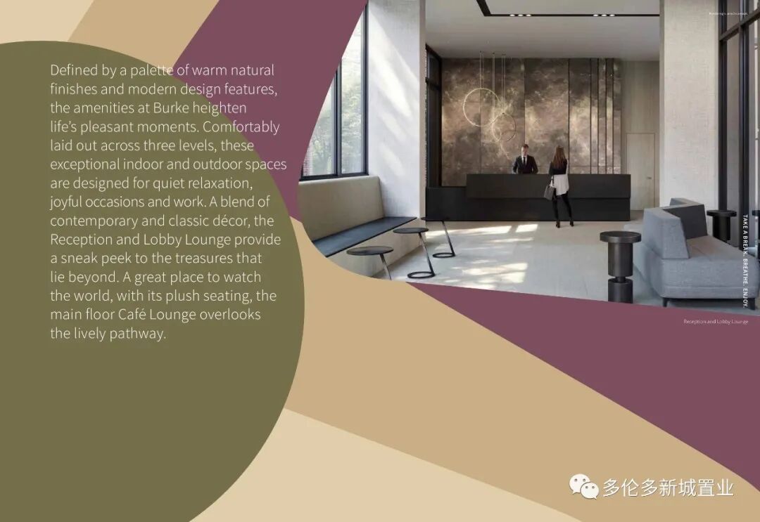Burke Condos由创立于1989年的温哥华大开发商Concert建造。Concert的业务很广泛,高级公寓、商业大楼,还有与政府合作的基础建设项目等,是一个多次获奖,在加拿大很有实力的房地产开发商之一。 Concert一直强调“a developer with a difference”- – 做与众不同的开发商,不仅在地产开发方面表现专业,它也很注重可持续发展,开发的项目社区都强调可持续发展。强调可持续发展!设计典雅,用料讲究。在多伦多发展很顺利,相继开发多个项目,如88 Scott等拥有7个出租公寓社区。未来会有更多的项目在大多地区落成!而此次的BURKE CONDO设计强调典雅的生活空间。因此由Concert开发的Burke Condos也必将成为多伦高级公寓的又一代表作。 05