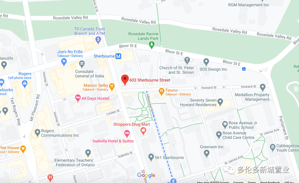 楼盘位于Bloor & Sherbourne St 东南角,楼下即地铁Sherbourne站,紧邻多伦多顶级社区Rosedale(玫瑰谷),相比于动辄几百万的玫瑰谷社区独立屋,BURKE CONDO价格相当亲民。住在BURKE CONDO在步行范围内便可享受商业、娱乐、金融及公共配套设施。对于喜爱购物的住户来说,这里更汇聚了各种精品高档品牌,步行十几分钟就可以到达多伦多最繁华的Bloor高档购物街和时尚区Yorkville,餐饮娱乐超市公园一应俱全!这里兼具了市中心的繁华与便利,同时又闹中取静,东面北面Ravine View,南面享湖景美色,西面感受城市精彩,享受世外桃源般的宁静。 步行2分钟即到Sherbourne地铁站