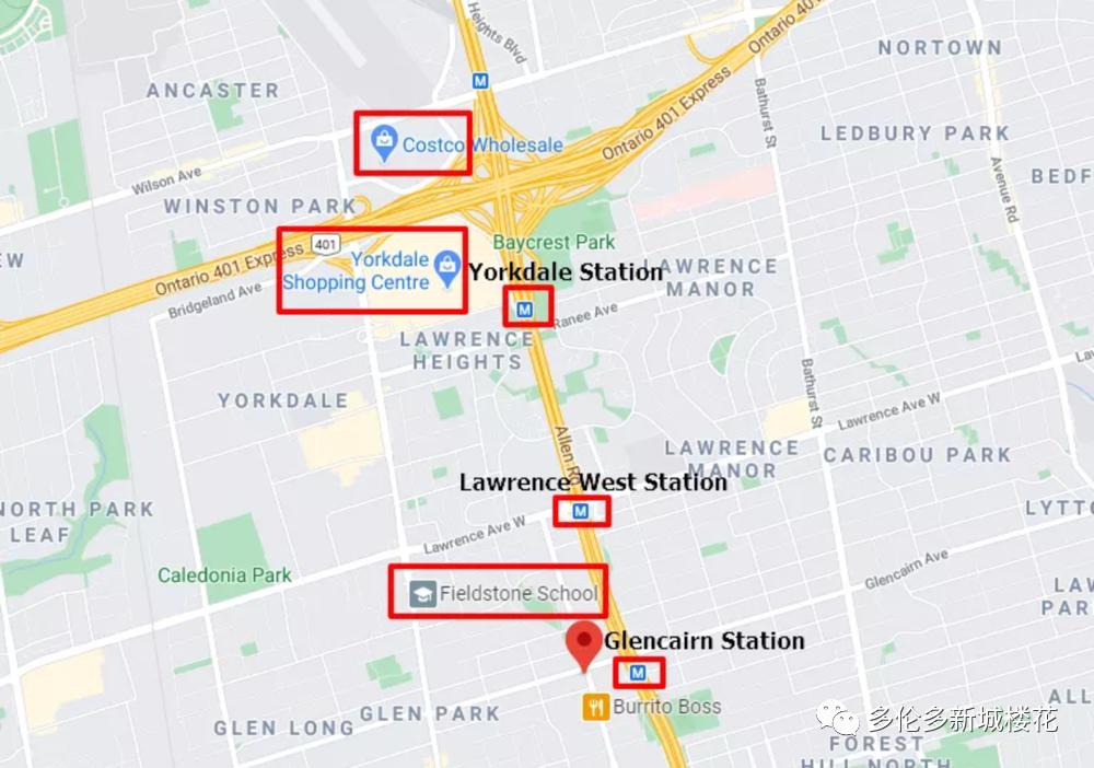 - 楼下即是公交站 - 步行仅3分钟至Glencarin地铁站 - 步行10分钟至Eglinton LRT轻轨站 - 轻松前Allen Rd和HWY 401/400/404 - 乘坐地铁3分钟即可到达Yorkdale购物中心 - 距约克大学15分钟车程或5个地铁站 - 5个地铁站,直达St.George站 - 半小时内直达多伦多市中心联合车站 - 附近的许多学校,如Glen Park公立学校和Damian天主教学校 - 10分钟至Eglinton West 及Lawrence West 地铁站 - 距多伦多最大的城市公园Downsview Park有10分钟路程 - 附近的公园包括 Downview Park, G Ross Lord Park, Earl Bales Park and Edward Gardens等 社区环境