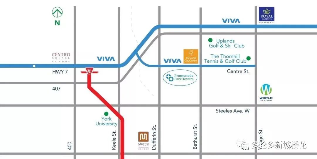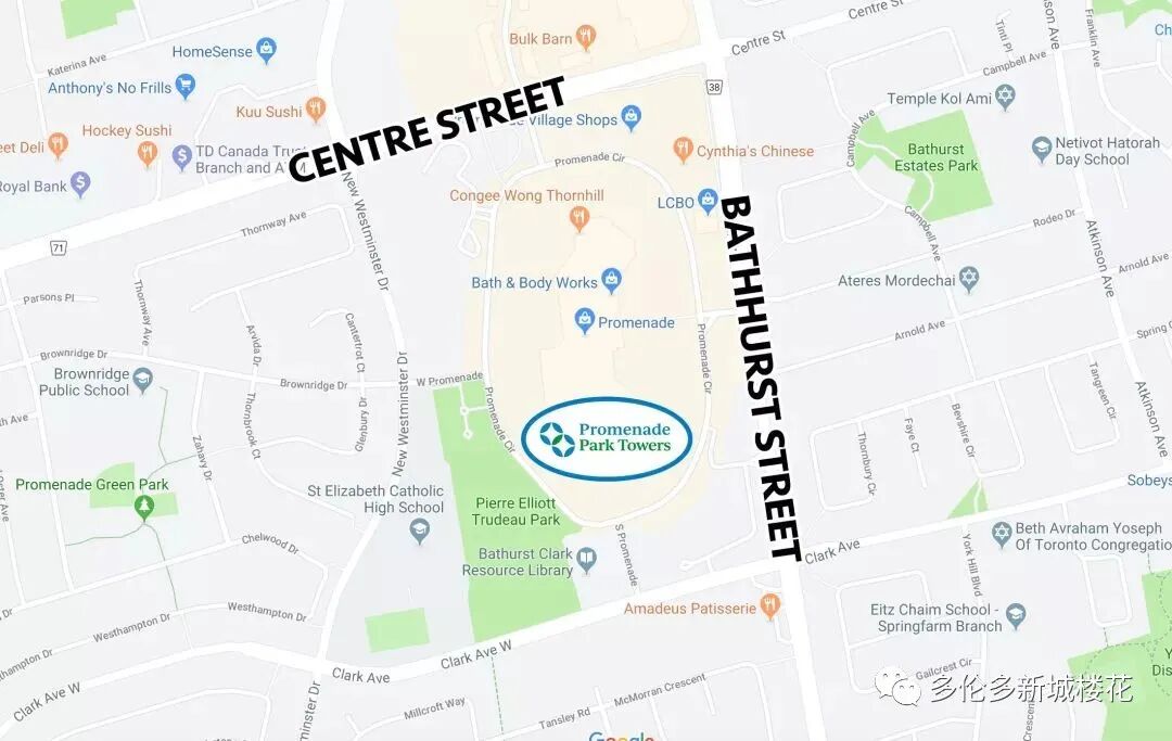 【项目名称】Promenade Park Towers 【项目地址】1 Promenade Cir, Thornhill 【项目位置】Bathurst St & Centre St 【楼层】30层,328个单位;35层,428个单位 【落成日期】2023年底 直通Promenade购物中心,超过150间店铺及电影院。其中包括大统华超市,PANDORA, COACH等等
