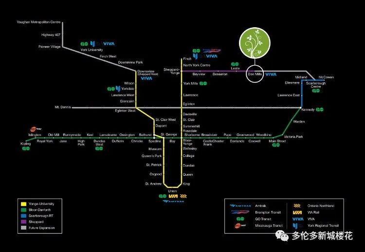 2分钟到DVP,直通404和401高速; 4分钟步行至地铁站和长途汽车总站; 大型购物中心Fairview Mall只有一街之隔; 乘巴士仅7分钟可到Seneca学院; 驱车十多分钟直达多伦多市中心和多伦多大学圣乔治分校; 近多伦多大学士嘉堡分校、约克大学; 成熟社区:体育馆,运动场,舞蹈室,日托服务和空中花园等服务; 近北约克综合医院和Ikea; 周边有多个公园和自然绿化带,包括Sunnybrook Park,Edward Garden等著名公园;