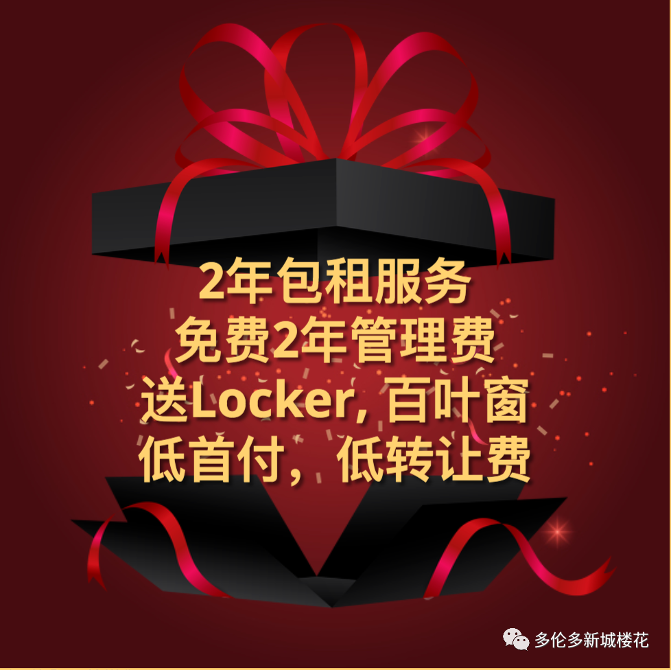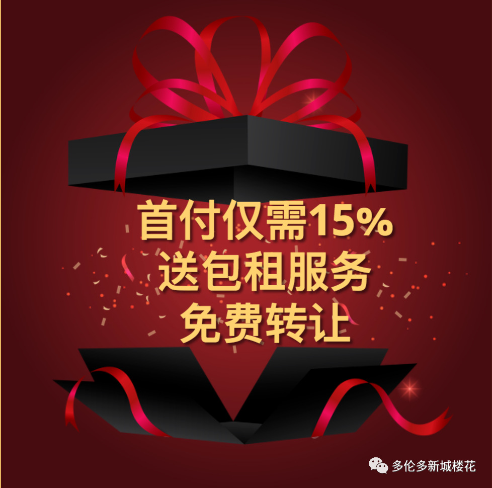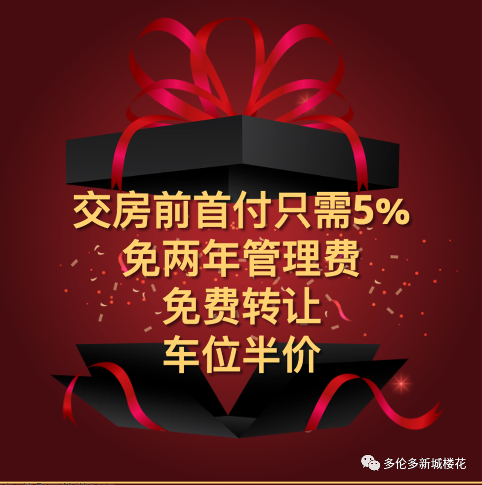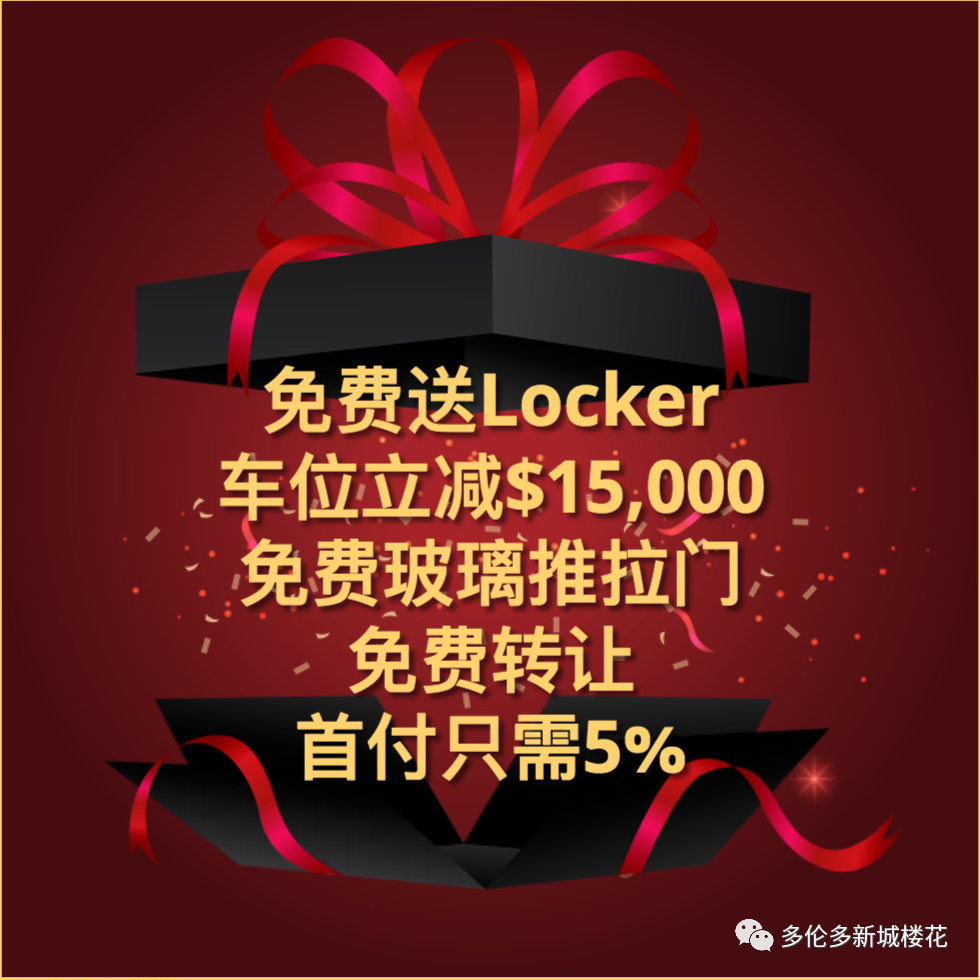 限时优惠: 免费转让(价值$5,000) 2房以上单位首付只需10%(签约付$5,000;30天付5%,365天付5%,入住付10%) 2房以下单位付款:签约付$5,000;30天付5%;90天付2.5%;180天付2.5%;370天付2.5%;入住付5% 车位:$56,000(1J+D单位不可购买) 管理费:$0.59/sqft(包Rogers高速上网服务) 获得更多的楼盘最新资讯请添加关注下方公众号平台:多伦多新城楼花