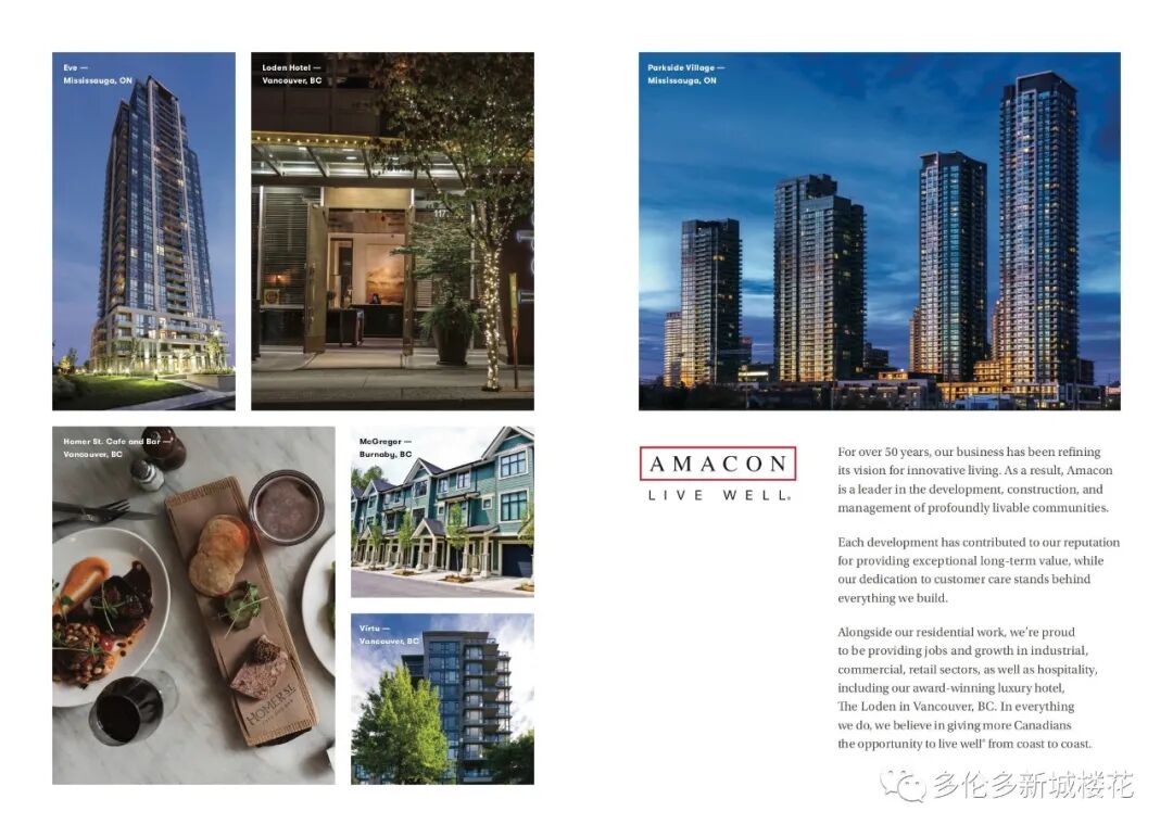 秉承对细节的热情以及卓越的设计和建筑传统,Amacon被认为是加拿大最有影响力的房地产开发和建筑公司之一。在建筑业中,公司的声誉取决于开发商对每个房屋的质量把控以及这些房屋如何经受住时间的考验。因此,对于Amacon而言,创造长期价值是一项基本的业务策略,公司的愿景是在未来几十年内继续成为加拿大最杰出的建筑商之一。 付款方式以及优惠