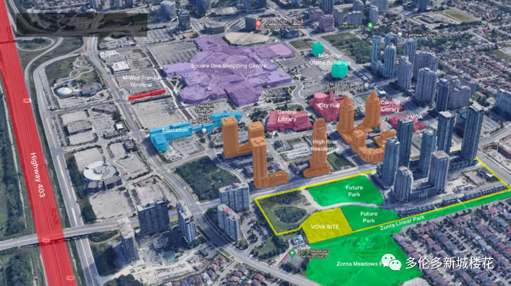 【楼盘名称】Voya Condo 【开发商】Amacon 【楼盘地址】465 Burnhamthorpe Rd W, Mississauga 【楼层】42/36 层 【单元数量】930 Units 【价格】40多万起 【单位面积】483-884 SqFt 【交房日期】2026年2月 密西沙加市中心大型规划社区,最新一期大型整体规划的Parkside Village占地30英亩,位于Burnhamthorpe Road West 和Confederation Parkway 交界处,在Square One 购物中心西边,举步可达。根据规划,Parkside Village 大型社区将包括15栋公寓大楼, 两个街区的联排镇屋,超过150,000平方英尺的零售和商业空间以及三英亩的绿地。提供共计6000个住宅单位。社区内各个大楼将由人行道和长廊互相链接一起,建成以后将有许许多多的家庭,学生,上班白领一组和小型企业的迁入该社区。 公寓设计