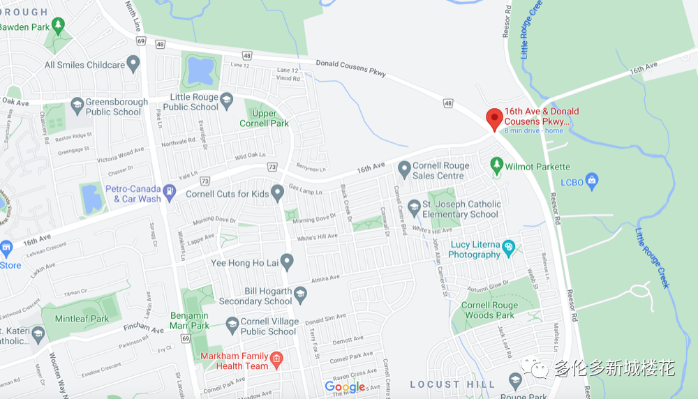 楼盘概览: 名称:Cornell Rouge 地址:16th Ave & Donald Cousens Pkwy 类型:【类型】独立屋、镇屋 开发商:Madison Group 入住:预计2022年11月 Cornell Rouge是由著名开发商Madison Group开发打造的豪华镇屋、独立屋项目,位于万锦的16街及Donald Cousens Pkwy的西南角,属于Cornell社区。万锦市的CORNELL社区,坐落在万锦市的东北部的,是万锦市最东边的一个社区。该区是安省少数有政府参与规划的城市发展项目,社区环境配套设施和学校网络均已建设完善中。 社区周边公共设施齐全,包括购物中心及超市、餐厅、学校、公园、医院、社区中心、图书馆、体育健身中心、高尔夫俱乐部等。除此之外,交通也十分便利。附近有包括GO Transit在内的众多公共交通,Go Train、YRT和VIVA等公共交通畅通无比,十分发达,驾车5分钟轻松到达407高速,便捷通往大多伦多的各个角落。 社区靠近Markham Stouffville Hospital,多家购物中心及超市,为您的生活提供便利条件