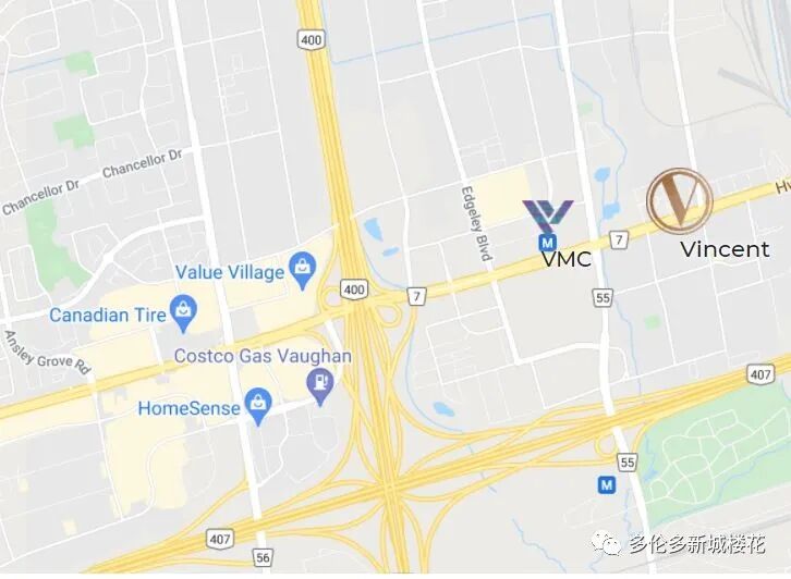 【楼盘名称】 Vincent Condos 【开发商】 Townwood Homes, Guglietti Brothers Investments, Rosehaven Homes 【地址】 2851 Highway 7 — Jane St. & Highway 7, Vaughan 【楼层】 北楼34层(现已发售),南楼27层(尚未开售) 【单元数量】 共766套,其中北楼447套,南楼319套 【单位户型】 1房—3房 【交房日期】 2026年1月 旺市黄金地段