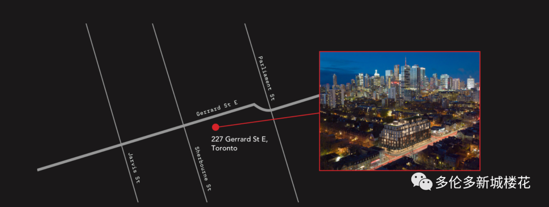 项目名称:The Georgian 开发商:Stafford Homes 项目地址:227 Gerrard Street East 楼层高度:7层 单位数量:107套 交房时间:预计2025年夏季 生活便利: 这里的公共交通配套设施齐全,有轨电车沿着Carlton St行驶,可以步行几分钟前往乘坐。这些有轨电车可直达地铁1号线Yonge-University的College或Queen's Park站。这条地铁站环绕多伦多市中心的金融区,并且一直延伸到北约克和旺市。乘坐地铁的人还可以两站转乘Bloor-Danforth 2号线,去哪里都非常方便。 The Georgian Residences 周边地区拥有 93/100 的极高公交分数,是真正的骑手天堂,可立即前往多条 TTC 巴士和有轨电车路线,只需几分钟即可将骑手连接到市中心。位于 College 和 Dundas 地铁站之间,居民可以快速到达城市的任何地方。这里距离Parliament St也只有几个街区,而目前Parliament St正在成为多伦多东部的主要商业区,入驻商家包括Dollarama、No Frills超市、药房和各种餐厅及酒吧。 -2分钟步行至Allen Gardens -2分钟步行至Bus公交站 -17分钟步行至Eaton Centre -14分钟步行至St.Lawrence Market -19分钟步行至Distillery District -9分钟步行至George Brown -15分钟步行至Ryerson -25分钟步行至Scotia Bank Arena -13分钟步行至Dundas Station The Georgian Condos配有健身室、瑜伽房、公共工作区域、宠物区、BBQ区等。 振兴社区在望,投资前景极佳: 据市政府相关规划文件,Cabbagetown社区未来还将建设更多的公寓项目,The Georgian Condos的步行指数是92分,公交指数是93分,非常适合居住在公寓。The Georgian Condos位于Gerrard St E的南侧,介于西边的Seaton St和东边的Ontario St之间。北边现为低层住宅区,东边则以低层住宅和小型店面居多,南边也是以低层住宅居多,而西边则是低层服务大楼。 杰出开发商: Stafford Homes是公认的最有经验的开发公司之一,一直以来他们凭借优质的建筑和精美的设计赢得了极佳的声誉,并获得了多个行业的奖项。自1980年代创立以来,Stafford Homes已向数千个家庭交付了高品质的住宅。 限时优惠: 付款方式:签约付$5,000;30天付5%;180天付5%;330天以及420天各付2.5%;交房付5% 车位+储物间:$90,000(673尺以上单位可购买) 管理:$0.66/sqft(包上网) 交房时间:预计2025年夏季