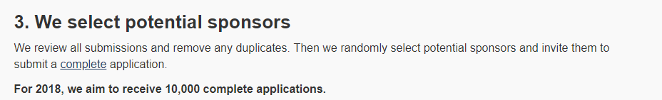 2016年加拿大移民局宣布,为了确保公平,自2017年起采取了新的“随机抽签”的申请模式。并把每年5千的名额提到了1万。
