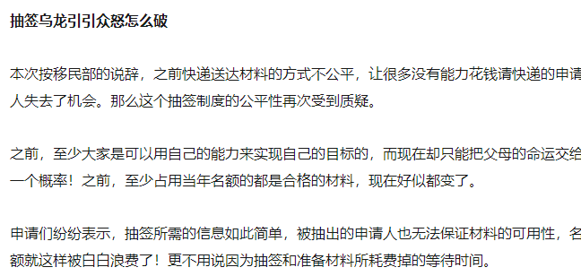 有许多人指处,在初步抽签的时候就忽略了担保者的资格筛选过程,在抽中后,在抽中后才去提交、审核材料。而如果被抽中的申请者不符合资格,则就白白浪费了名额。尽管政府承诺会在下一年的抽签中补上之前浪费掉的名额,但这样确实也延长了更多人的等待时间。